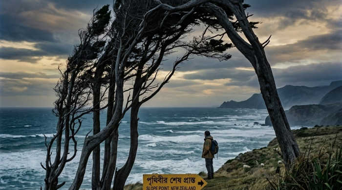 “যেখানে সমুদ্রের গর্জন থামে আকাশের নীলিমায়, আর বাতাস বয়ে যায় কেবলই ফেরার পথ ভুলে—সেখানেই পৃথিবীর এক নিভৃত কিনারা।” ভৌগোলিক মানচিত্রে নিউজিল্যান্ডের দক্ষিণ দ্বীপের একেবারে শেষ বিন্দুটির নাম ‘স্লোপ পয়েন্ট’ (Slope আরও পড়ুন...
