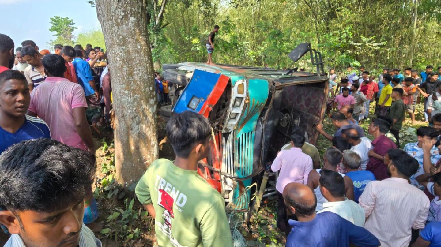 দেবীগঞ্জে নিয়ন্ত্রণ হারিয়ে খাদে বাস, আহত বহু যাত্রী