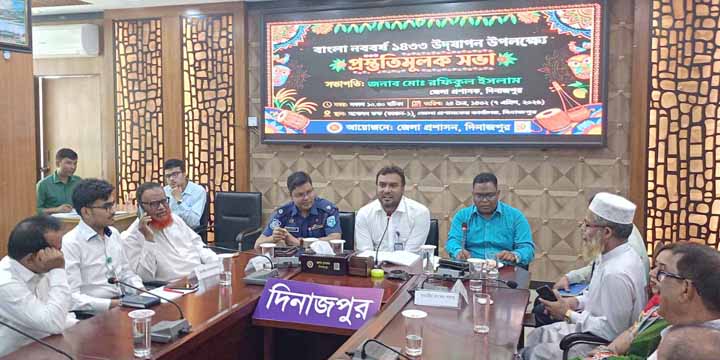 দিনাজপুর জেলা প্রশাসনের আয়োজনে বাংলা নববর্ষ উপলক্ষে প্রস্তুতিমূলক সভা অনুষ্ঠিত হয়েছে।