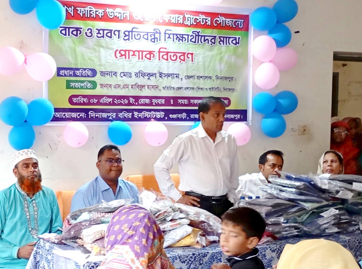 দিনাজপুরে বাক ও শ্রবণ প্রতিবন্ধীদের মাঝে নতুন পোশাক বিতরণ